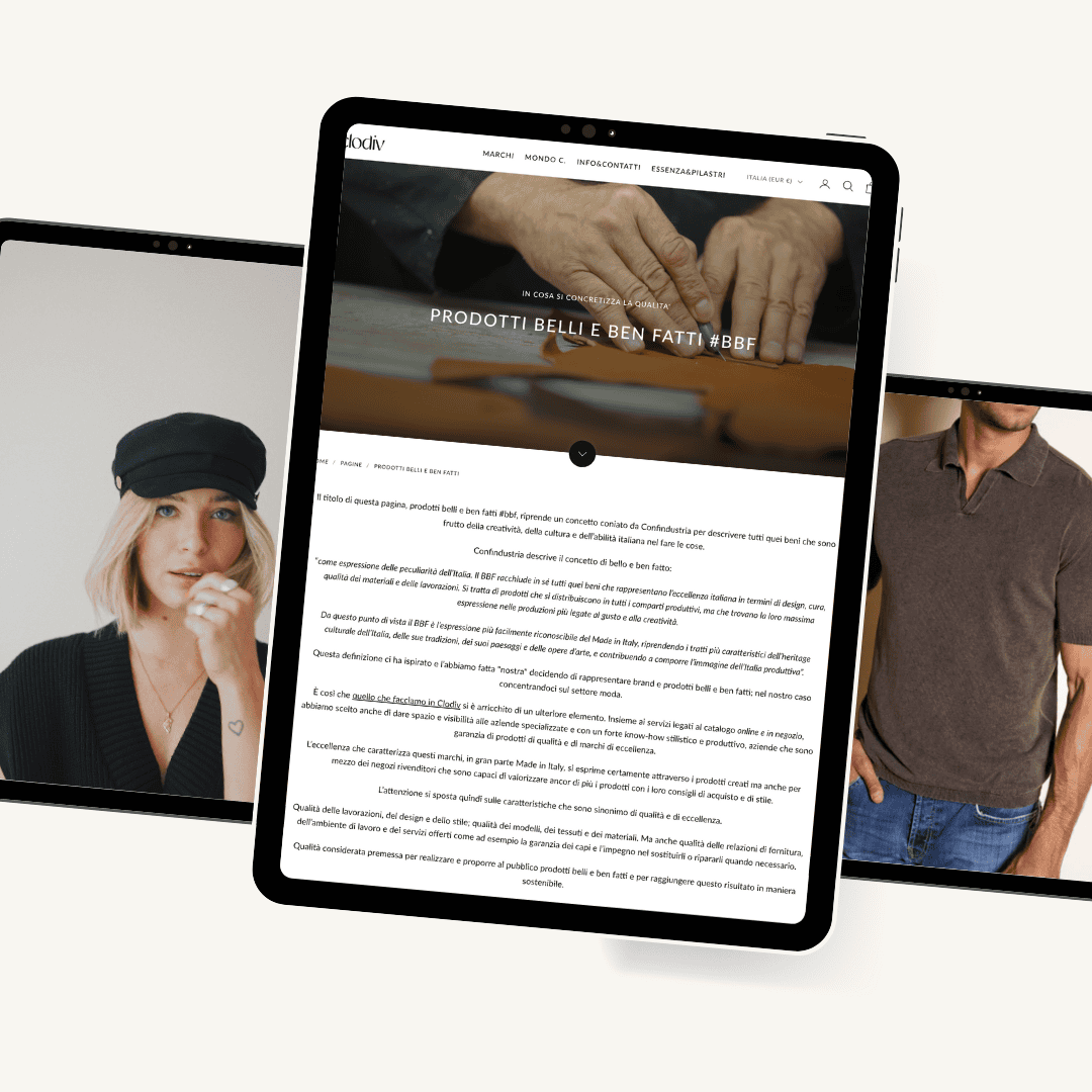 Su clodiv.com, l’immagine di brand è valorizzata grazie allo storytelling incentrato sul concept del Bello e Ben Fatto.